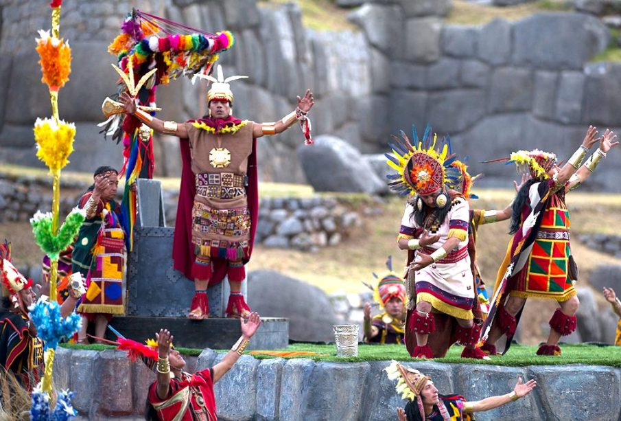 Sacsayhuamán: Escenario central con dramatización del ritual del sol, danzas y música.